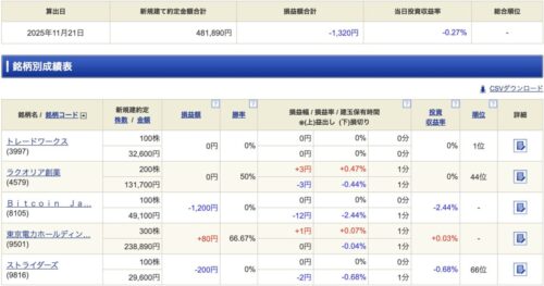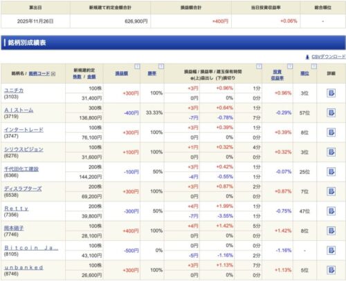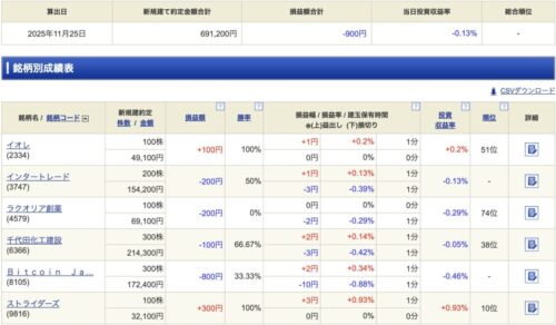 【デイトレ日記】2025/11/20|10秒撤退ルールの徹底と各銘柄の振り返り