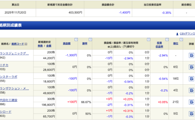 - 利確幅を+5にしたが、+3〜+4なら後場寄りで利確できた可能性