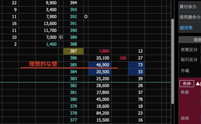 - 大口の急落に巻き込まれた。424円でリバウンドしており、もう1ティック下が理想