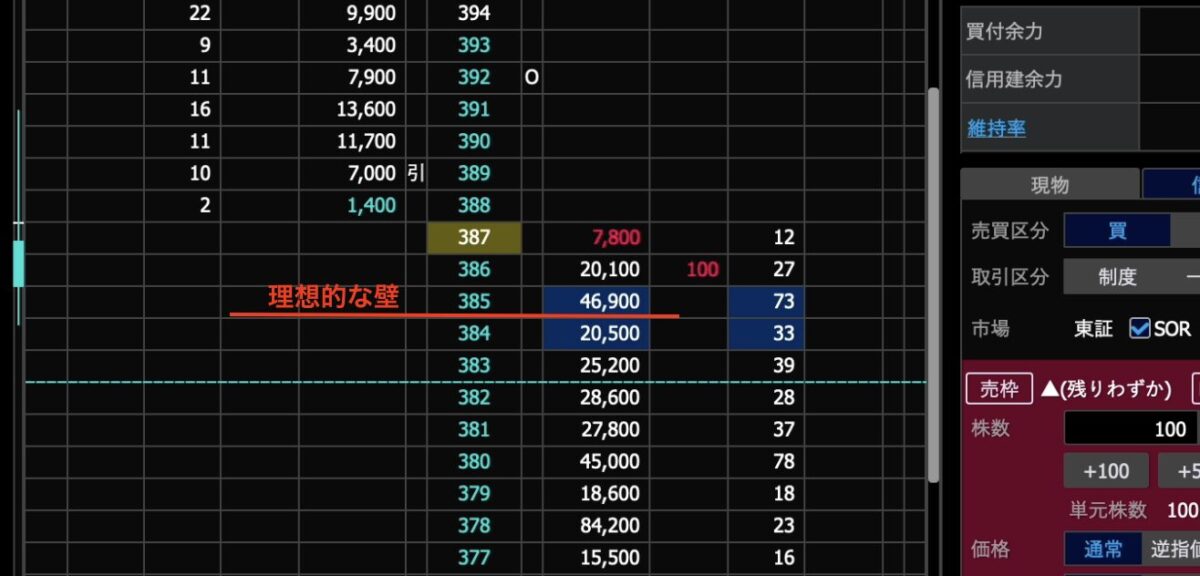 • 売り板に大口の注文があり、一時的に上昇が抑えられている印象