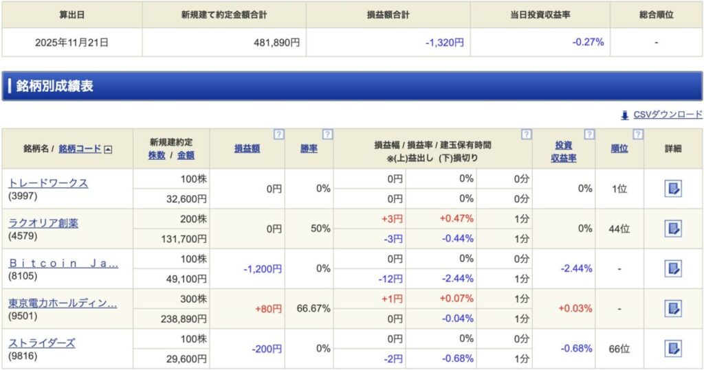 - 1ティックが 0.1 円なので、気分転換に入っている感じ