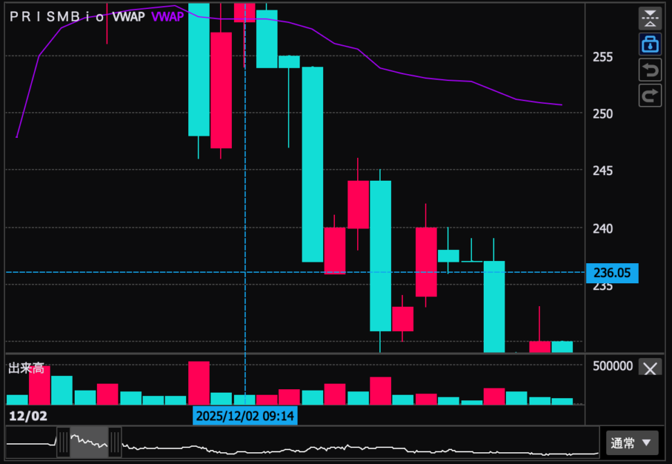 - 寄り付きの上昇の起点を意識したエントリーだが悪手