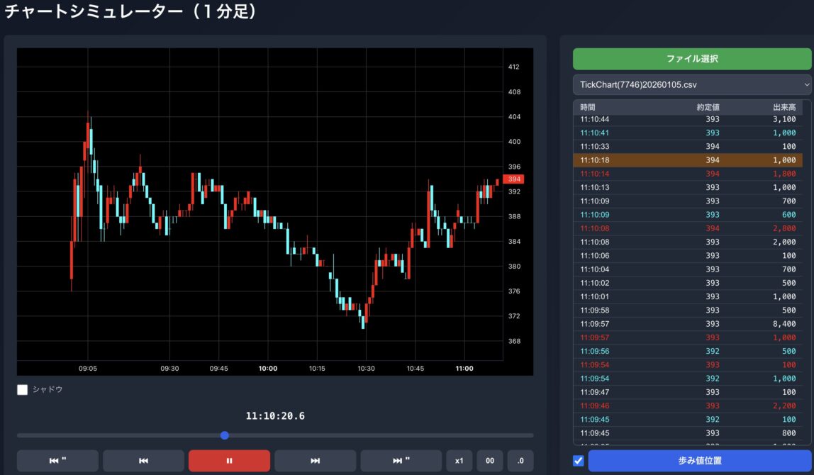 トレード日記 2026/01/05 トレード 2026.01.05 目次 トレード記録振り返り トレード記録 本日はノートレード 岡本硝子を見ていたが、入れるタイミングが見つからず 良い感じの急落はあったが、ちょっと読めなかった 振り返り 1週間ぶりくらいだったが若干手順を忘れたのもあった 明日も引き続き行うが、まずはリハビリかなぁ 200株で基本入るが、300株で入ったりする練習などができたので良かったかも 価格が近い場合は分割数を減らして入るのも良さそうだと思った まずは明日以降、去年の最終週くらいの成績が出せるまでもっていくのを目標とする