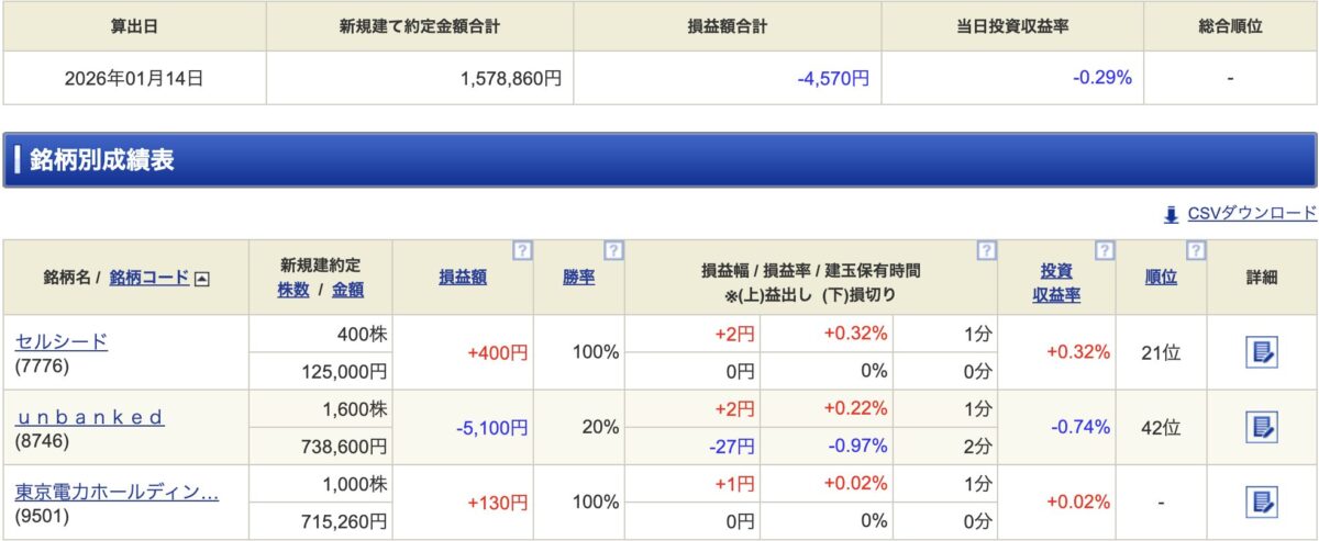 - 今日は途中で気づけて、東電ではマイナスになることは無かったが、このままやっていたら危なかったかも