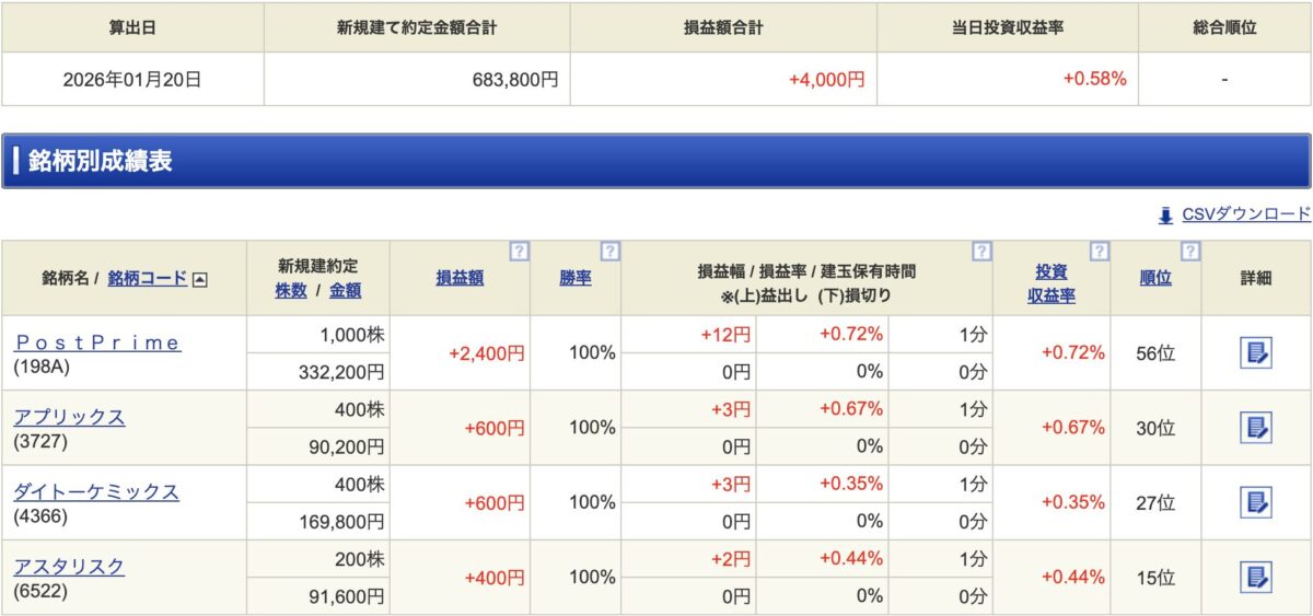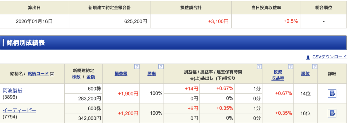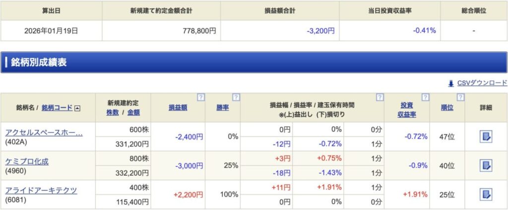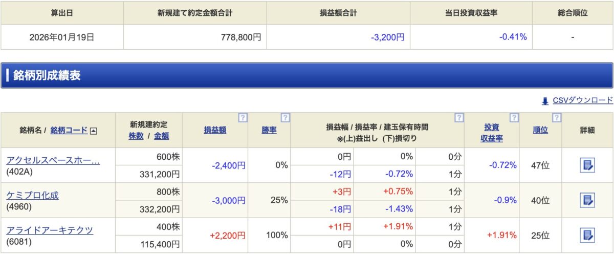 - 今日マイナスだった取引はどちらも寄り付き直後