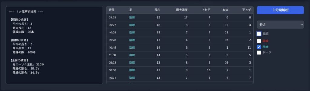 陰線はもう少し選別したいところもあるので、それはおいおい機能を追加していく
