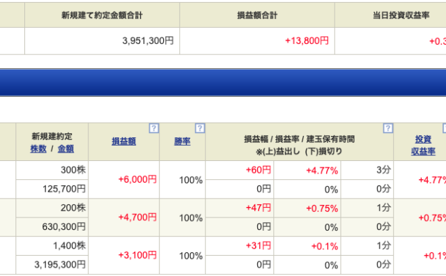 • 例えば今は100〜200で入っているが、安い銘柄などで1000で入って数ティック取るだけで数千円になるので、ちょっと狙ってみたい