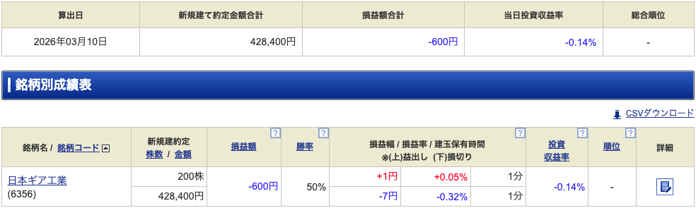 - その後入り直し少しだけとって、それ以降は取引無し